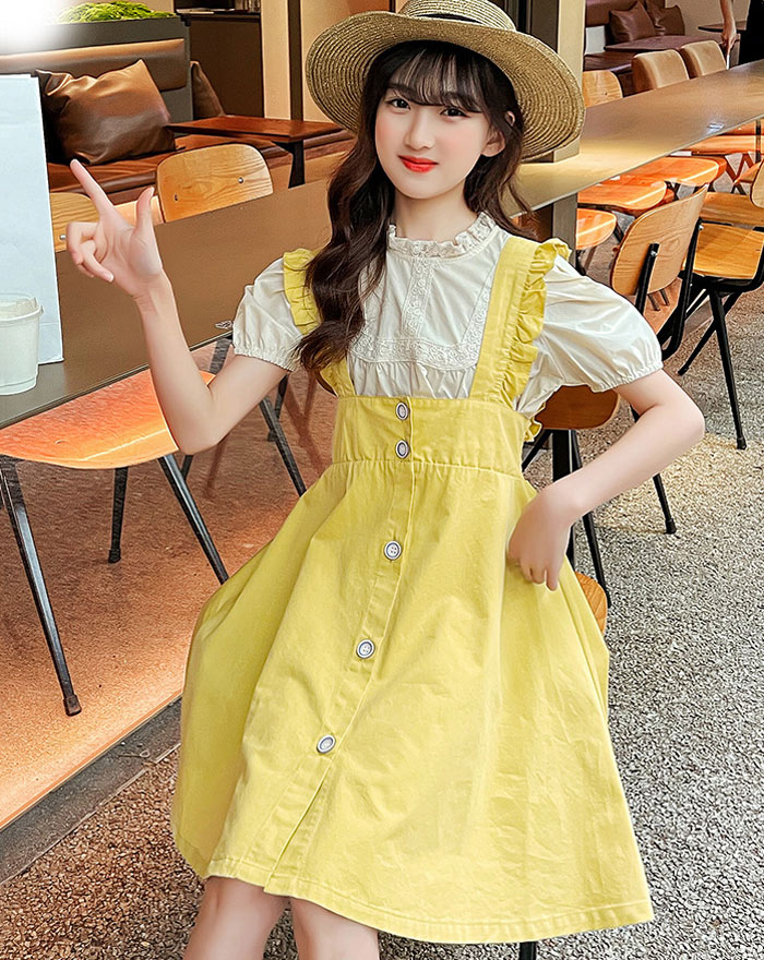 セットアップ 韓国子供服 2点セット 半袖トップス+サロペット パンツ 女の子 Tシャツ トップス+ジーンズ110cm 120 130 140 150 160