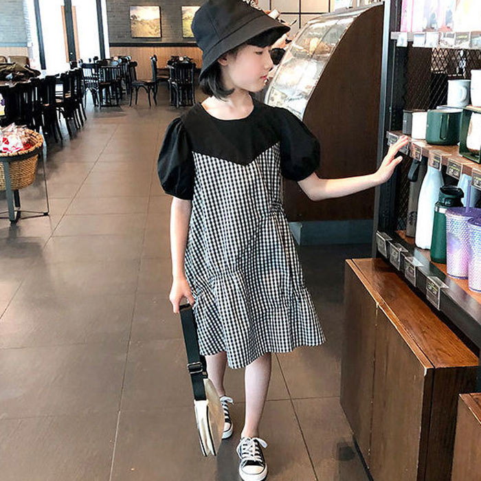 韓国 子供服半袖 ワンピース 入学式 子供 ドレス 女の子 チェック柄 ジュニア キッズ 卒園式 フォーマル ワンピース スカート110 120 130 140 150 160cm