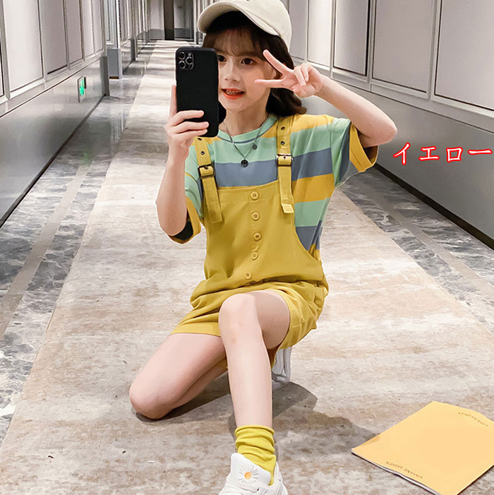キッズ半袖 Tシャツ 女の子 長ズボン オーバーオール デニム パンツ 110cm 120cm 130cm 140cm 150cm 160cm