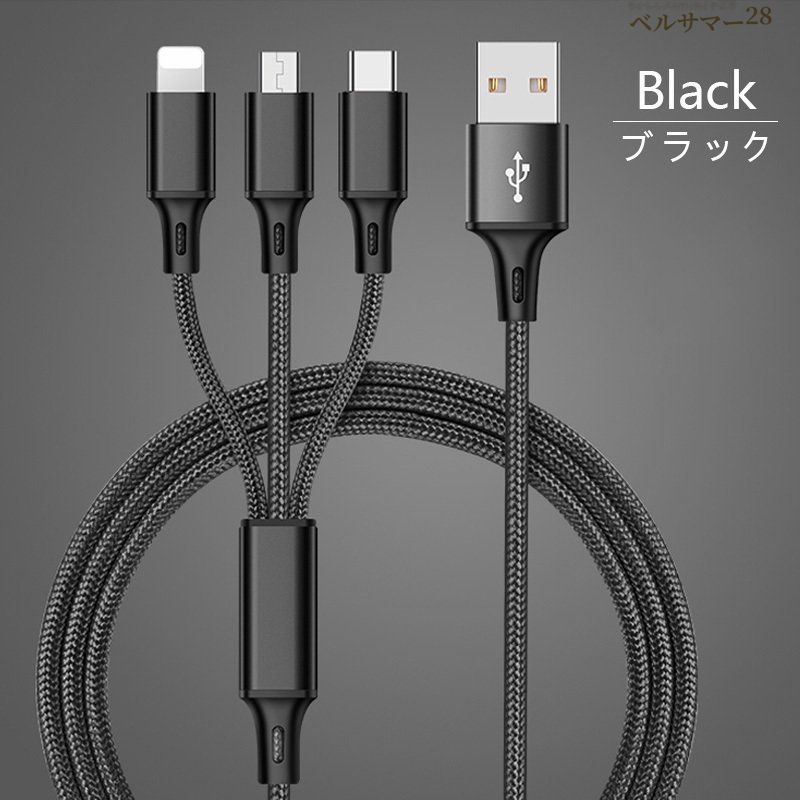 1本3役 スマホ充電 急速充電 ケーブル iPhone Android 充電器 ケーブル usb typec タイプc ケーブル 急速充電 充電 ケーブル Type C micro usb micro