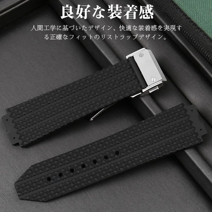 腕時計バンドシリコン ウブロ 専用 互換性あり 柔らかいシリカゲル ラバーベルトステンレスバックル 耐久性 25*17mm