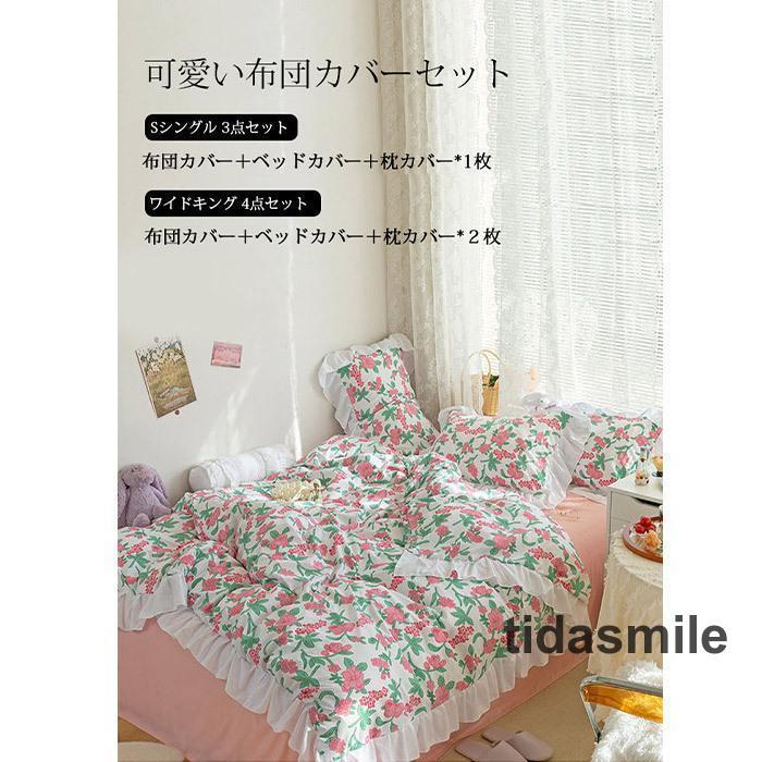 フリル付き 布団カバー 3 4点セット