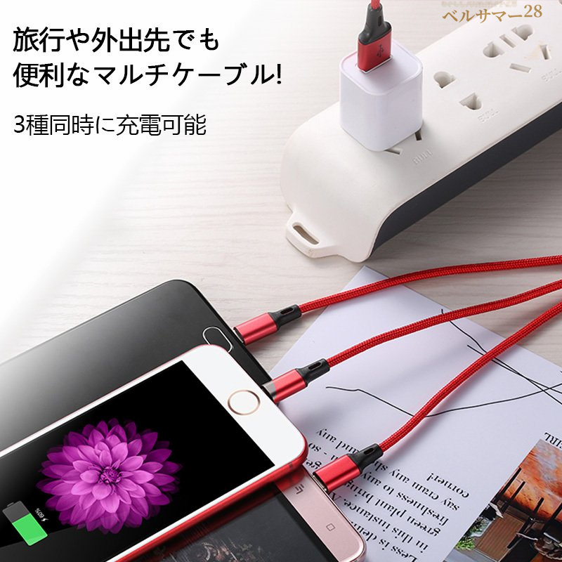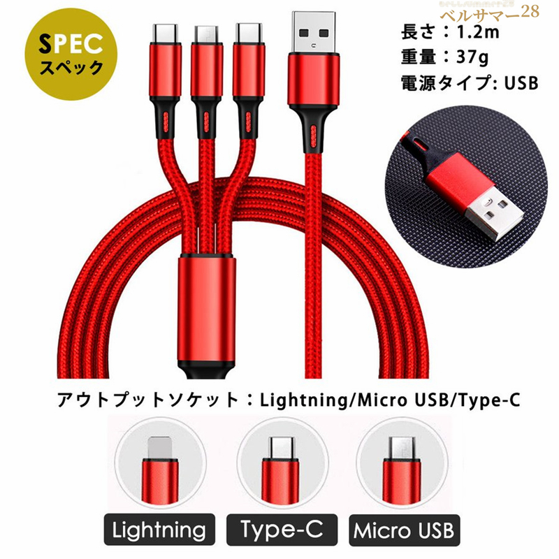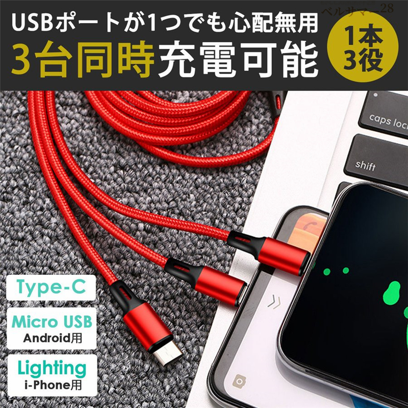 usb type-c ケーブル USB iPhone android iphone ケーブル 3in1 1本3役 スマホ充電 急速充電 ケーブル iPhone Android 充電器 ケーブル usb