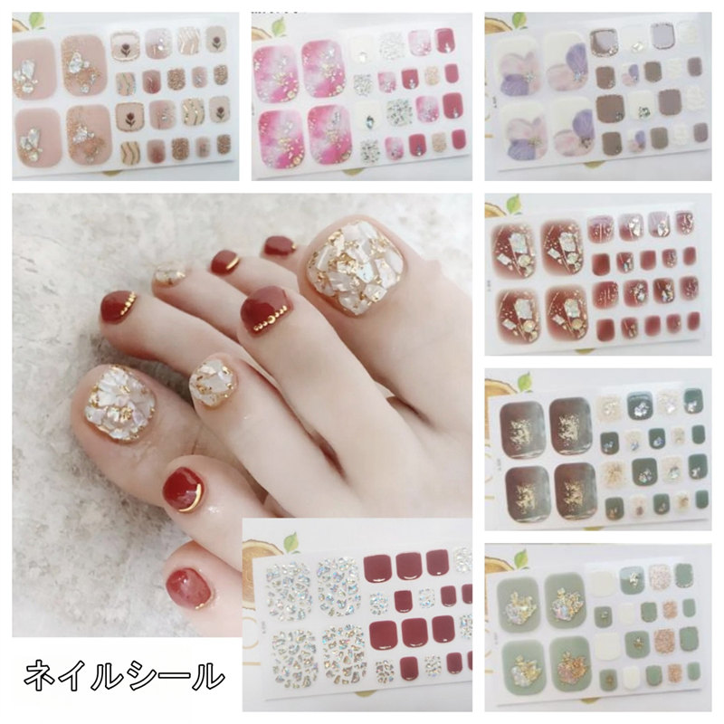 32色展開貼るだけでジェルネイル完成 ネイルシール フットネイル レディース 女性 ネイル用品 足の爪用 デザインチップ セルフネイル かわいい おしゃれ