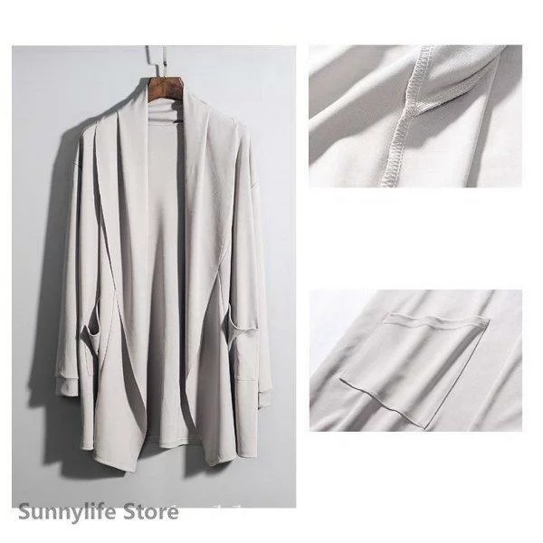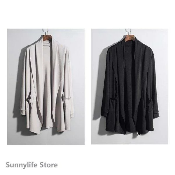 メンズロング丈カーディガン大きいサイズ長袖ニットカーディガンアウター羽織コートトップス春秋無地おしゃ