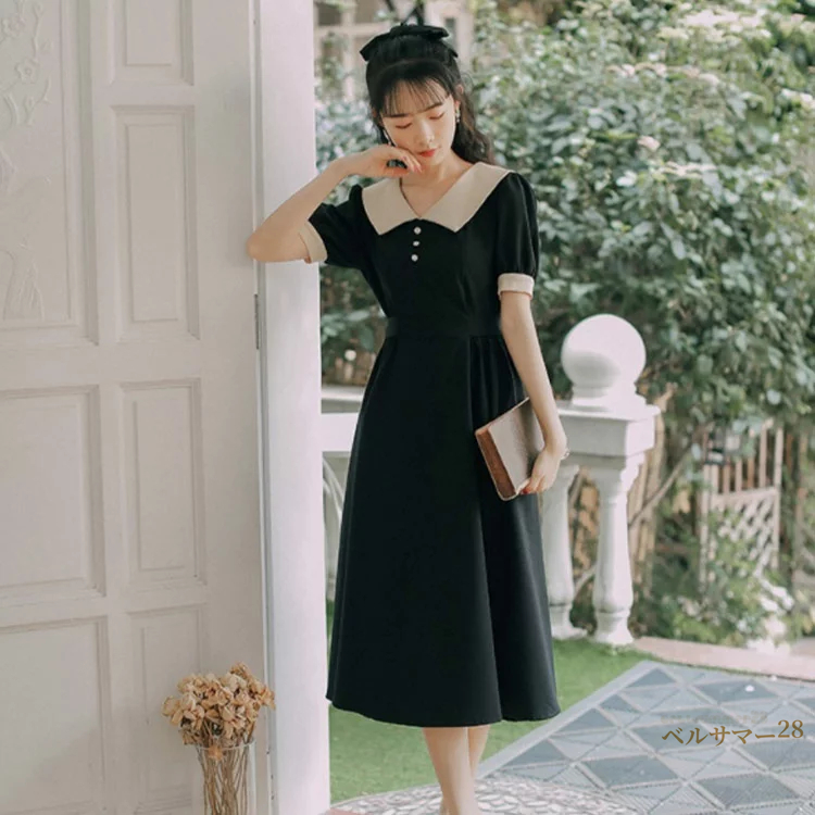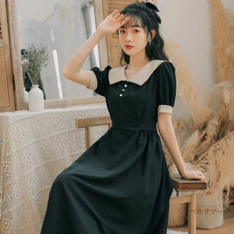 ワンピース ビッグカラー 半袖 ロング