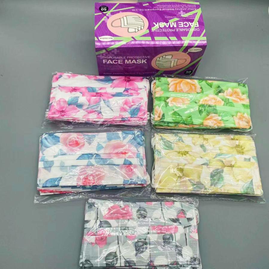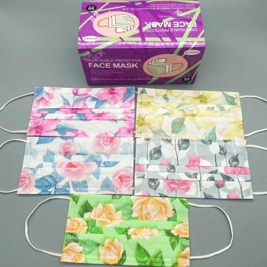 マスク 不織布 50枚 花柄マスク 小