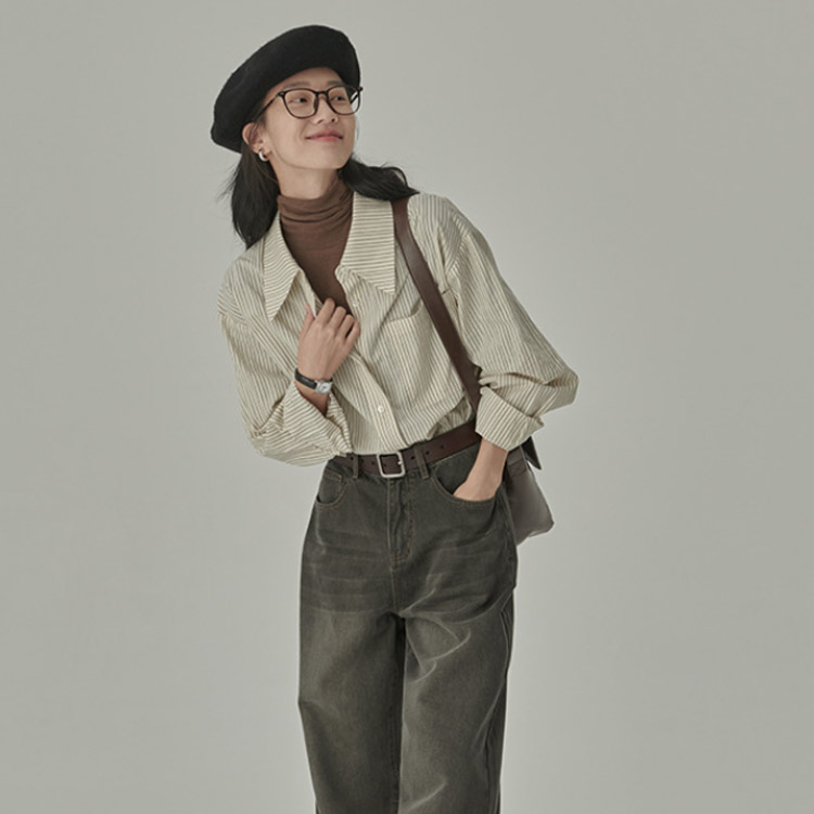 ストライプシャツ オーバーサイズ レデ