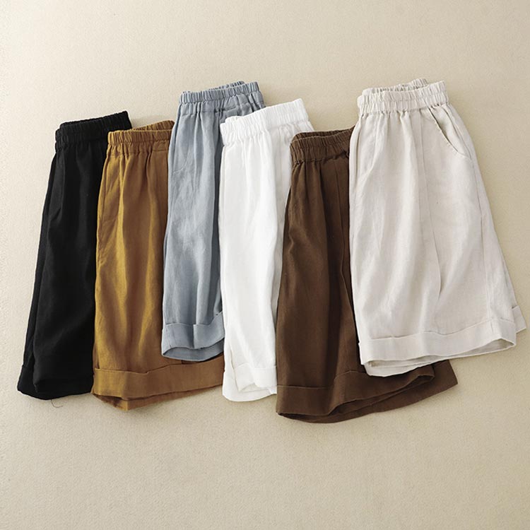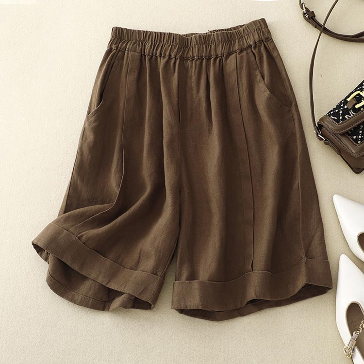 5分丈 ワイドパンツ コットン リネン