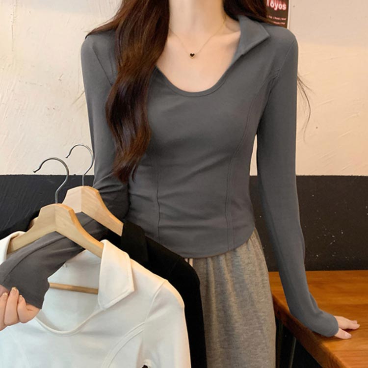 Tシャツ Uネックレディース 長袖 襟
