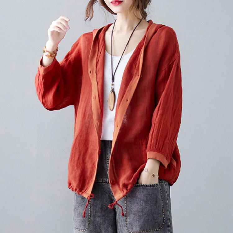 リネン カーディガン 長袖 パーカー