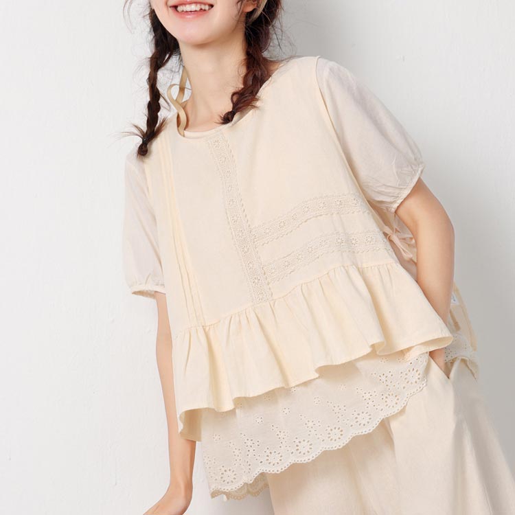 シアースリーブ ドッキングシャツ ボウタイシャツブラウス