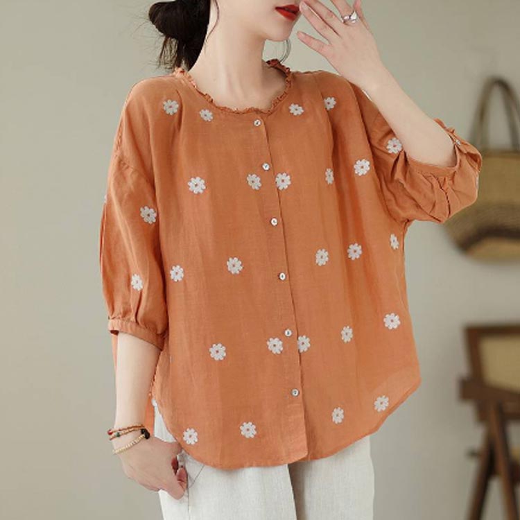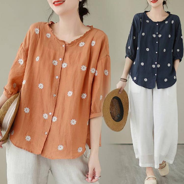 シャツ 麻 綿 レディース リネンシャ