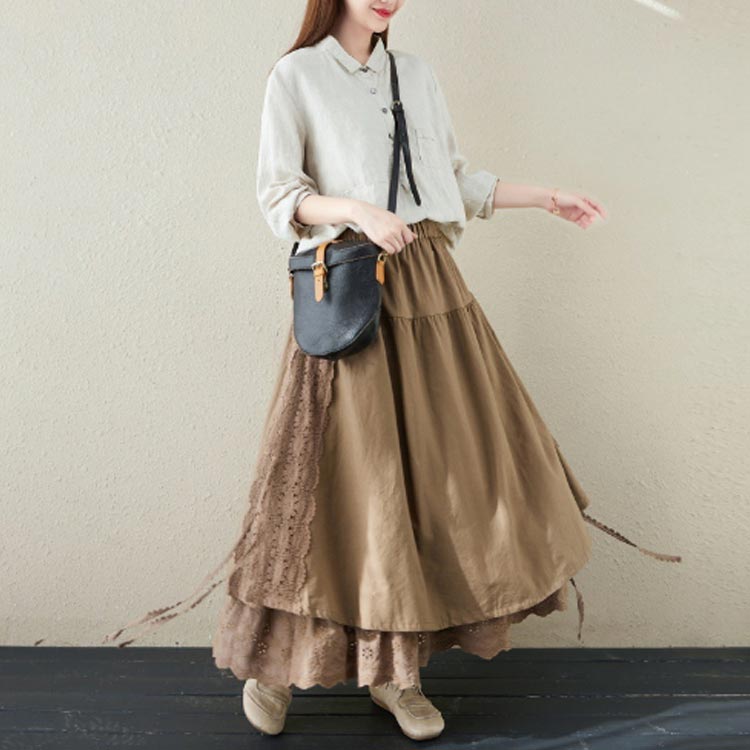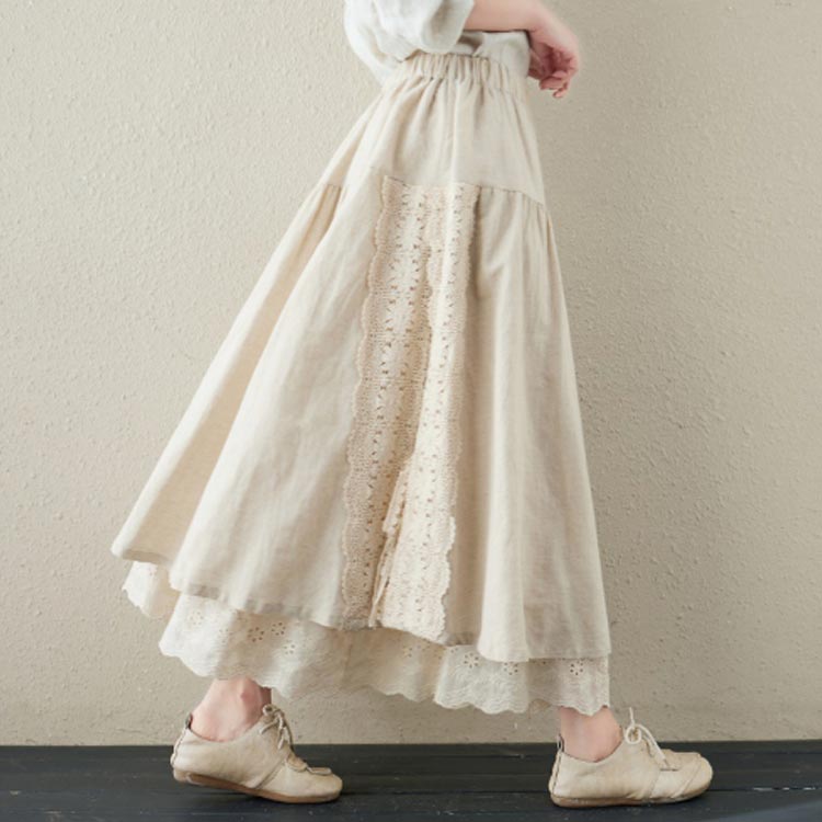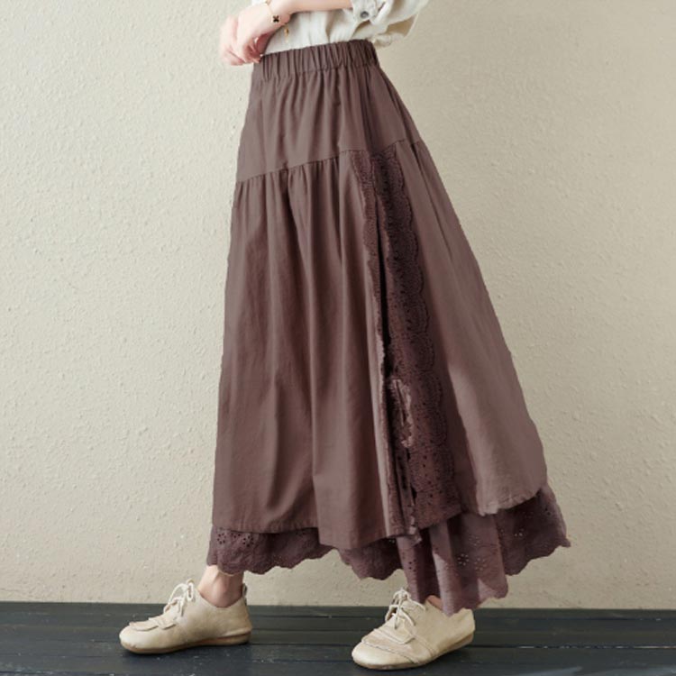 ロングスカート 綿麻スカート フレアス