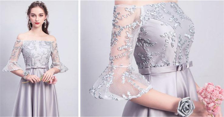 グレー ピンク シャンパン5デザインパーティードレスワンピース二次会演出司会ブライズメイドドレス結婚式お呼ばれ マキシ丈ロングドレスブライズメイドドレスフォーマルドレス花びらロング丈特価ドレス