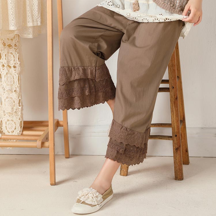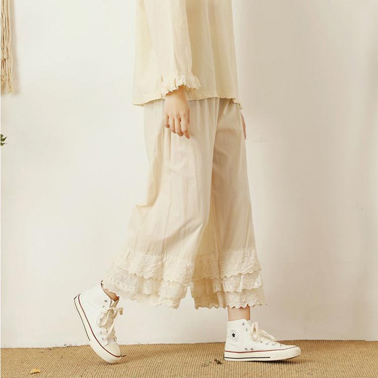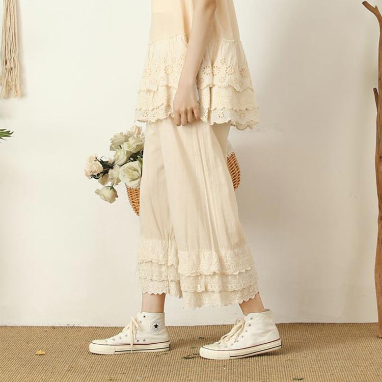 ペチパンツ ロング 裾レース 刺繍 重