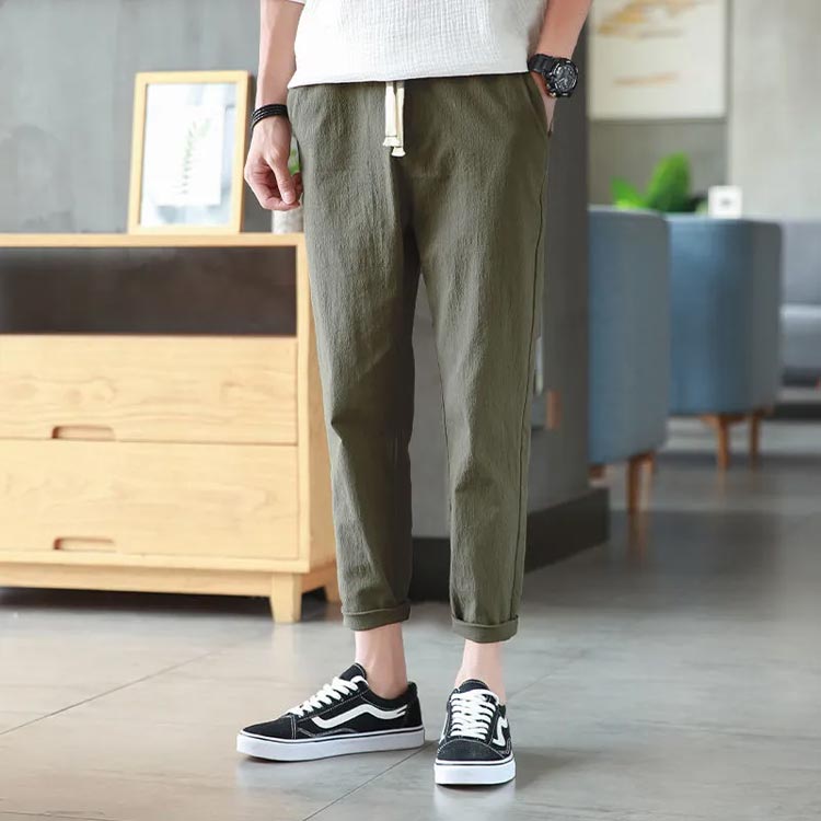 夏 メンズ リネンパンツ 涼しい 綿麻