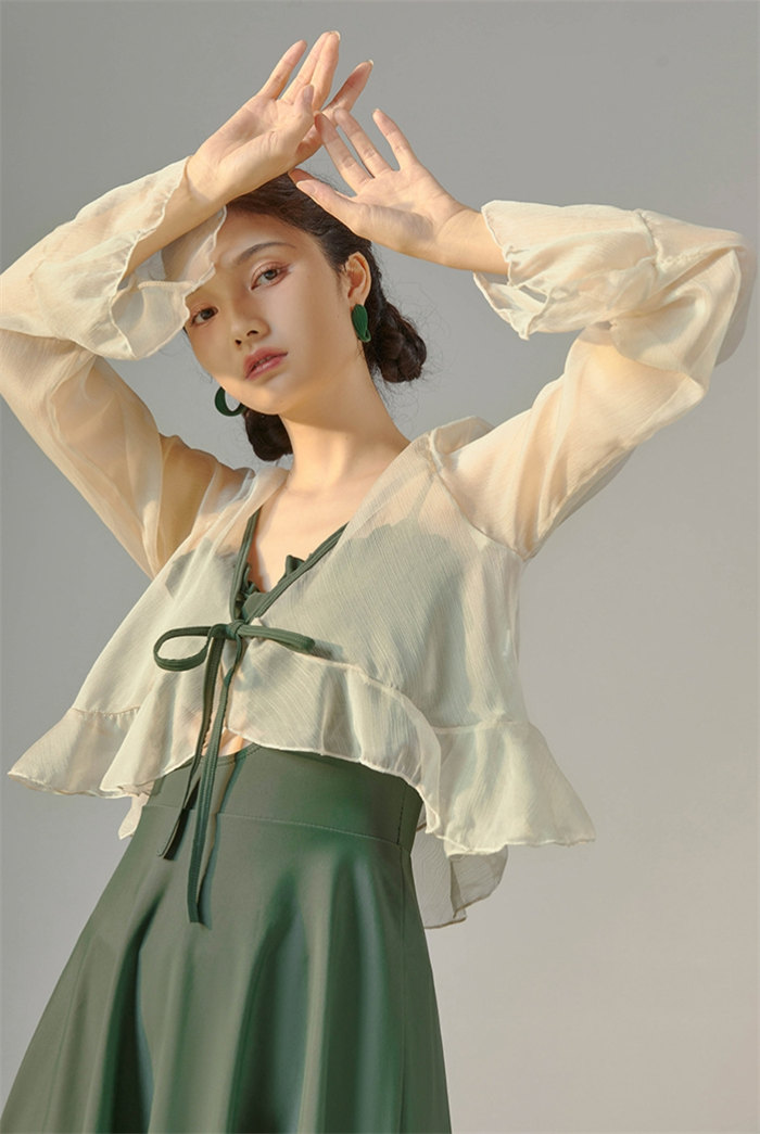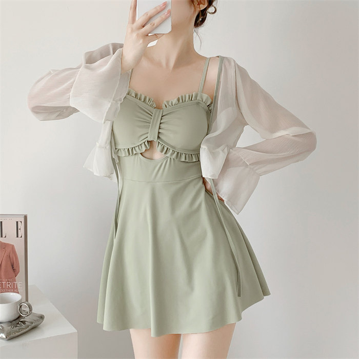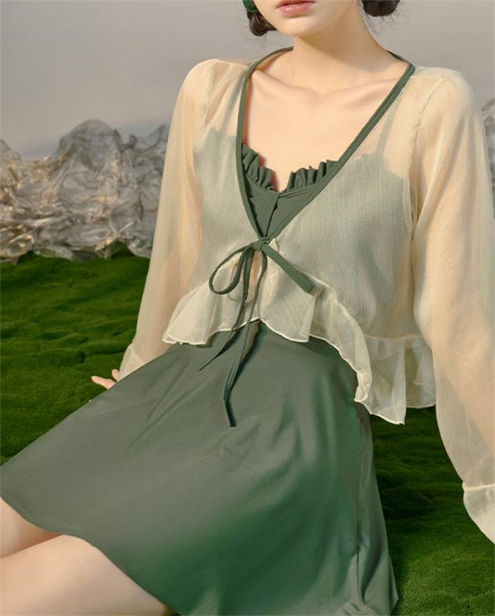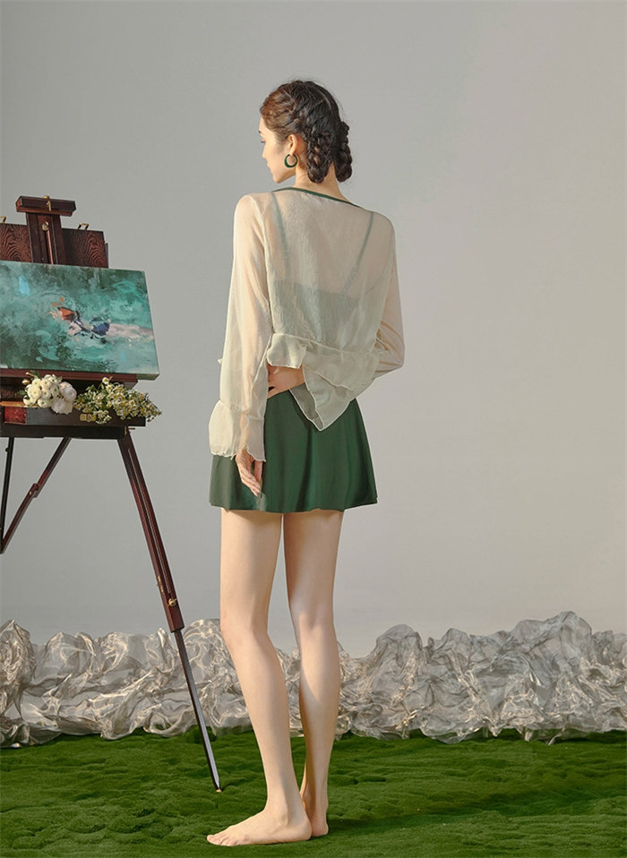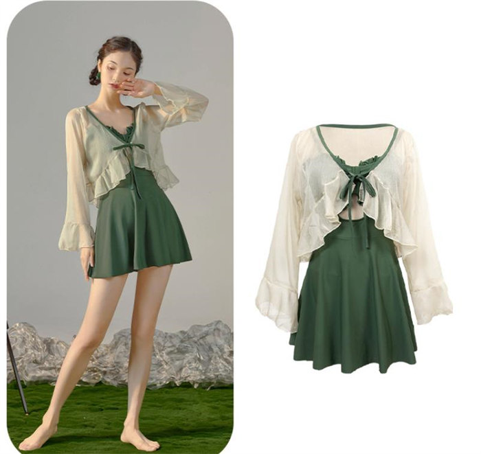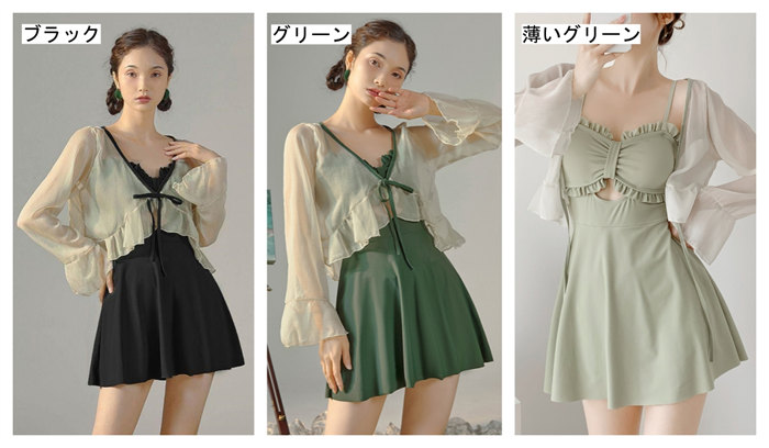 3色水着 レディース 女の子 体型カバー みずぎ ノースリーブ 長袖 トップス セクシー カバーアップ スクール スカート ブラウス ビーチ バックシャン 女性向け 太もも ママ水 S M L XL