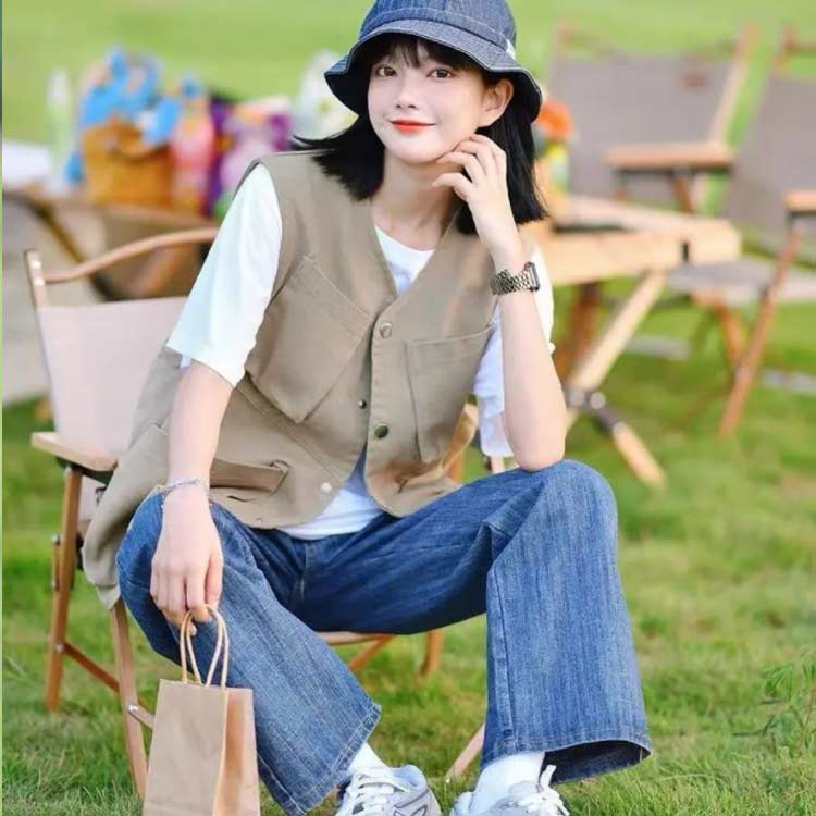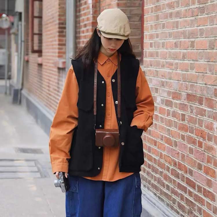 前開き 春 ノースリーブ 重ね着 オシ