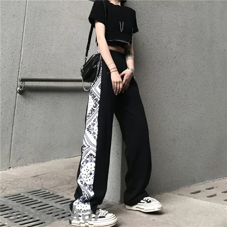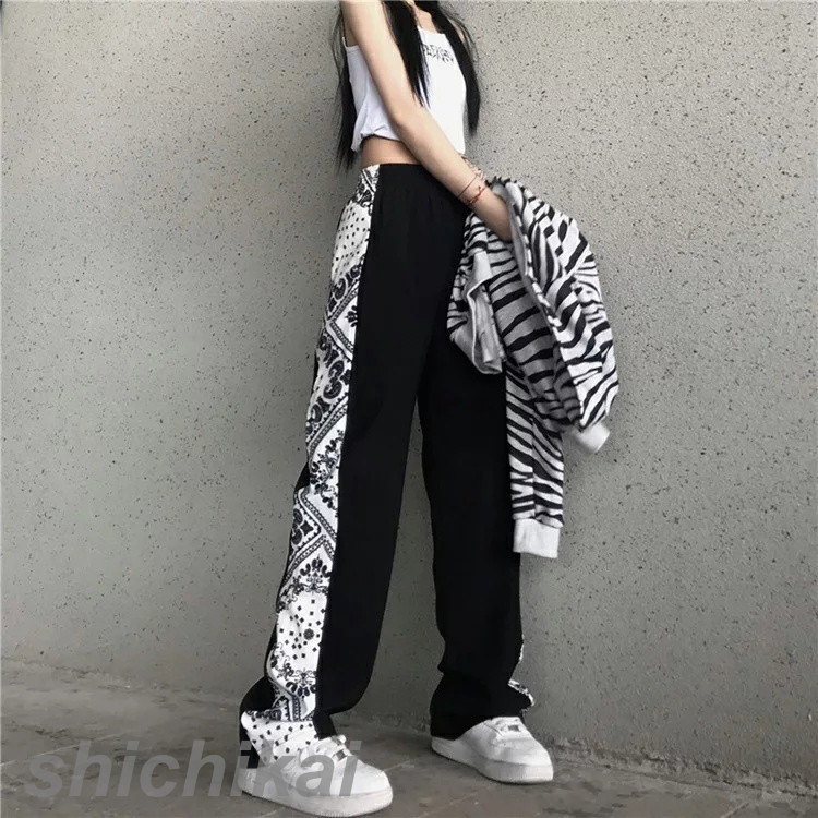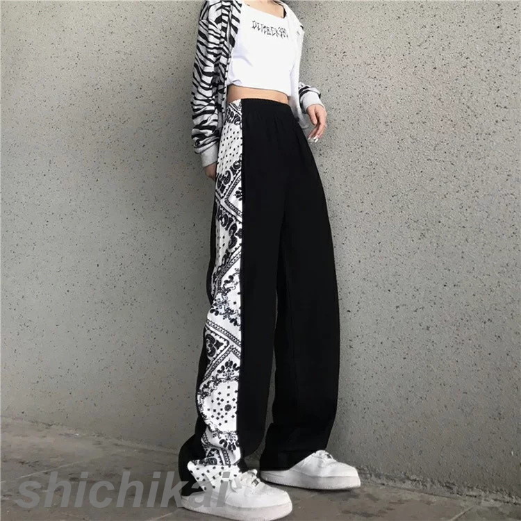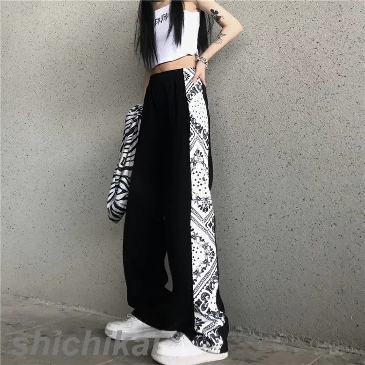 サイドバンダナ柄パンツ ペイズリー柄 ボトムス ワイドパンツ ストレディースファッション ボトムス パンツ