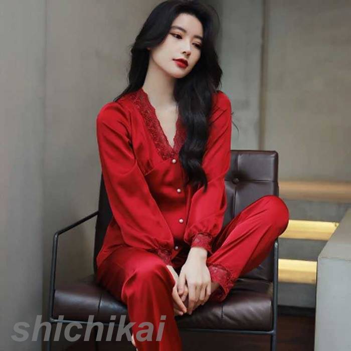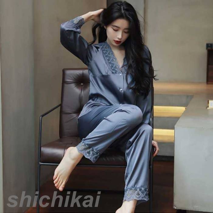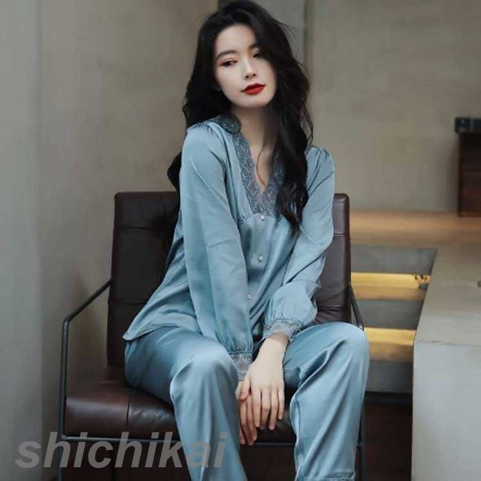 サテン パジャマ ルームウェア レディース 春 秋 長袖 かわいい 前インナー 下着 ナイトウェア レディース ナイトウェア ルームウェア パジャマ