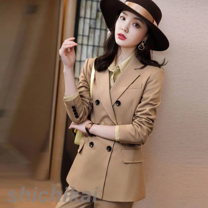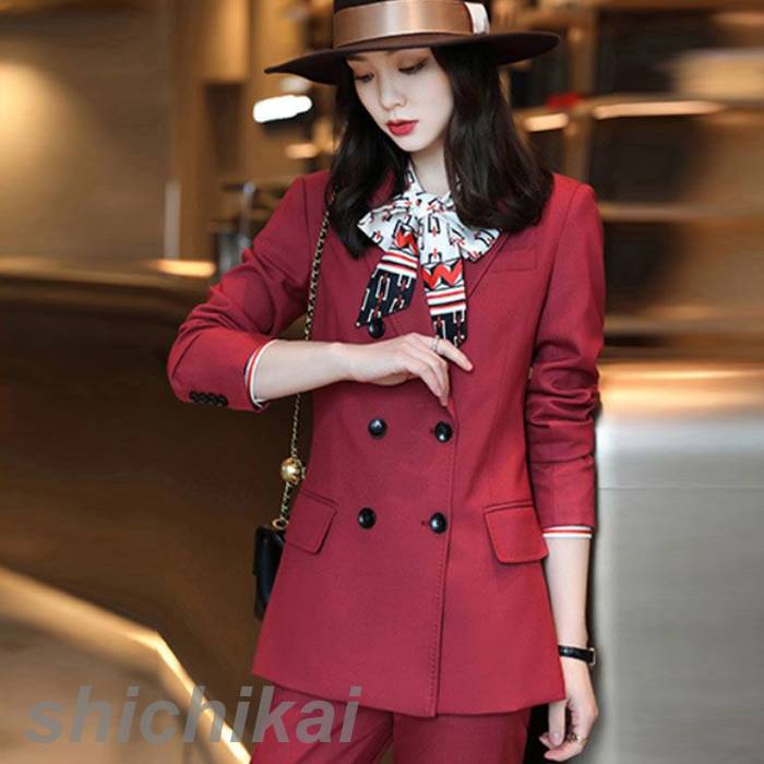 高級感溢れる手作り風パンツスーツ。