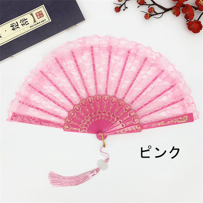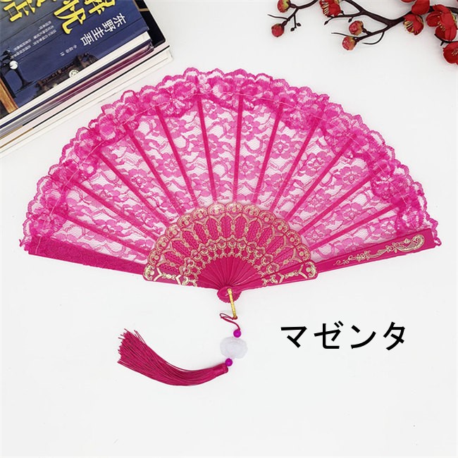 6色展開レース扇子 練習ダンス用 折り