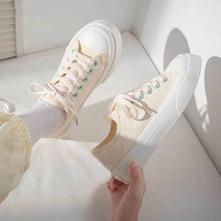 花刺繍 ローカット スニーカー レディース キャンバス シンプル フラワー刺繍 カジュアル靴 レディース靴 スニーカー