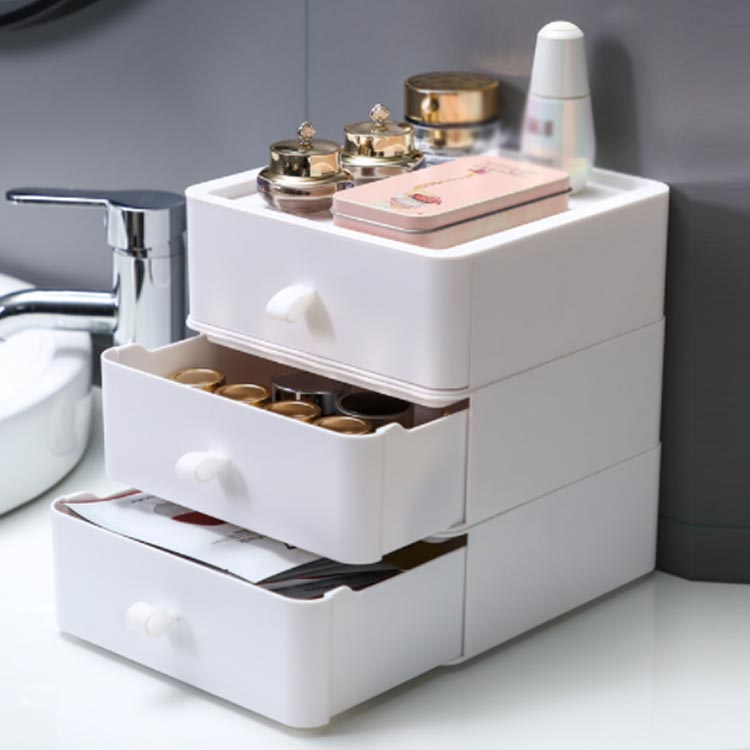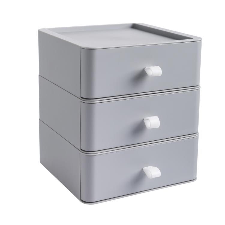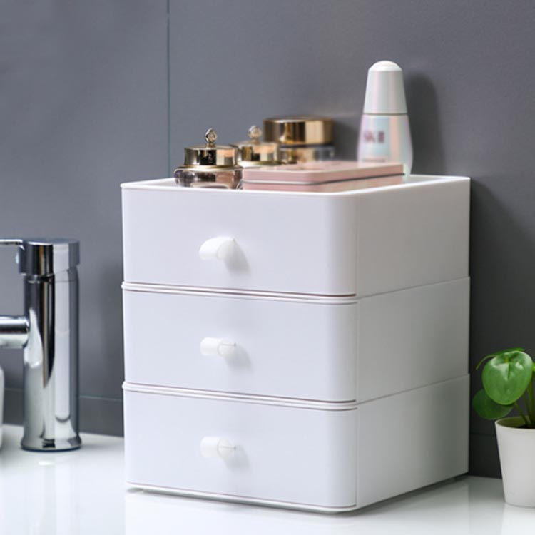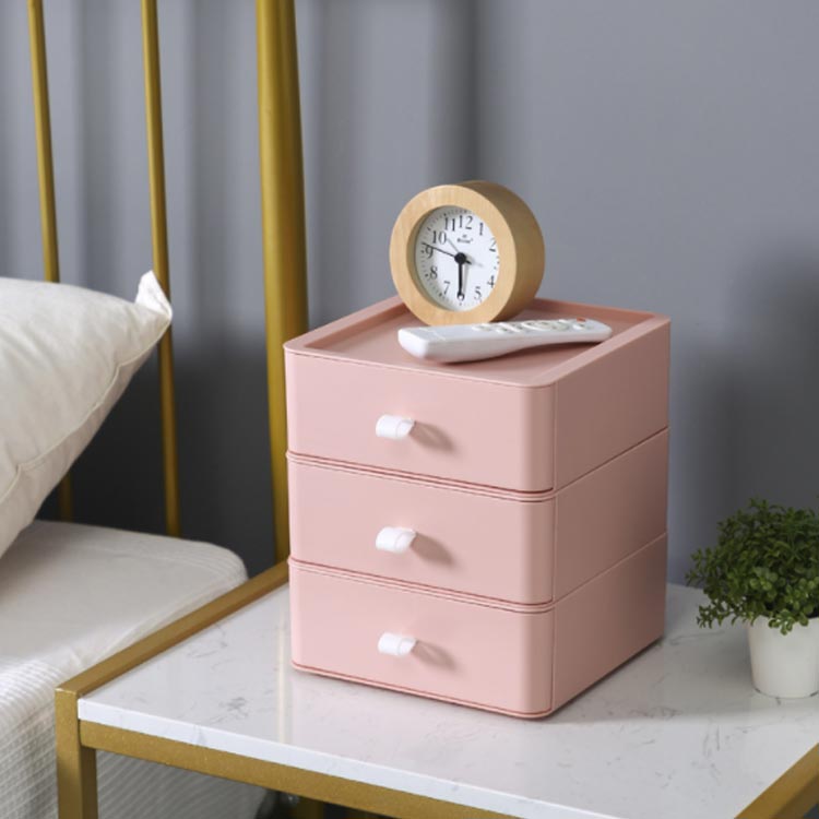【デスク上がスッキリ】文房具や化粧品、小物などスッキリ収納できる引き出し収納ケース。オフィス、寝室、バスルームなどの整頓にピッタな3段引き出し収納。