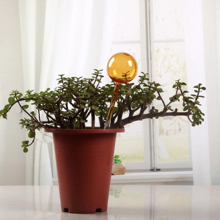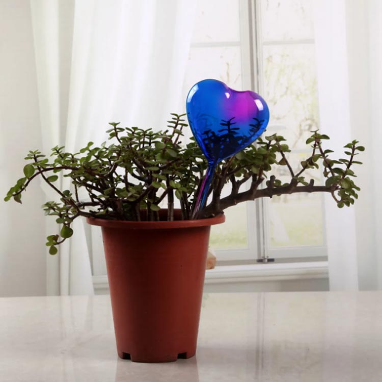 小鳥やボールの中に水を貯め、植木鉢の土に差しておくことで、少しずつ水が補給されて植物の生育を助けます。