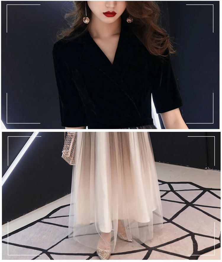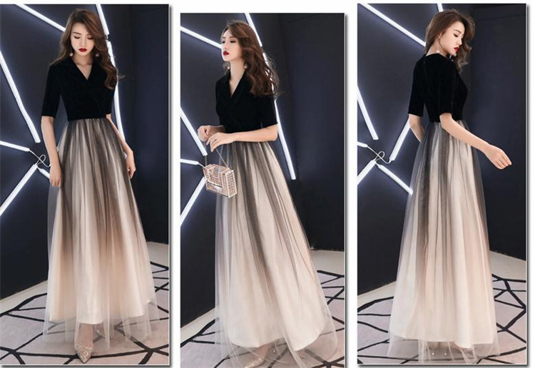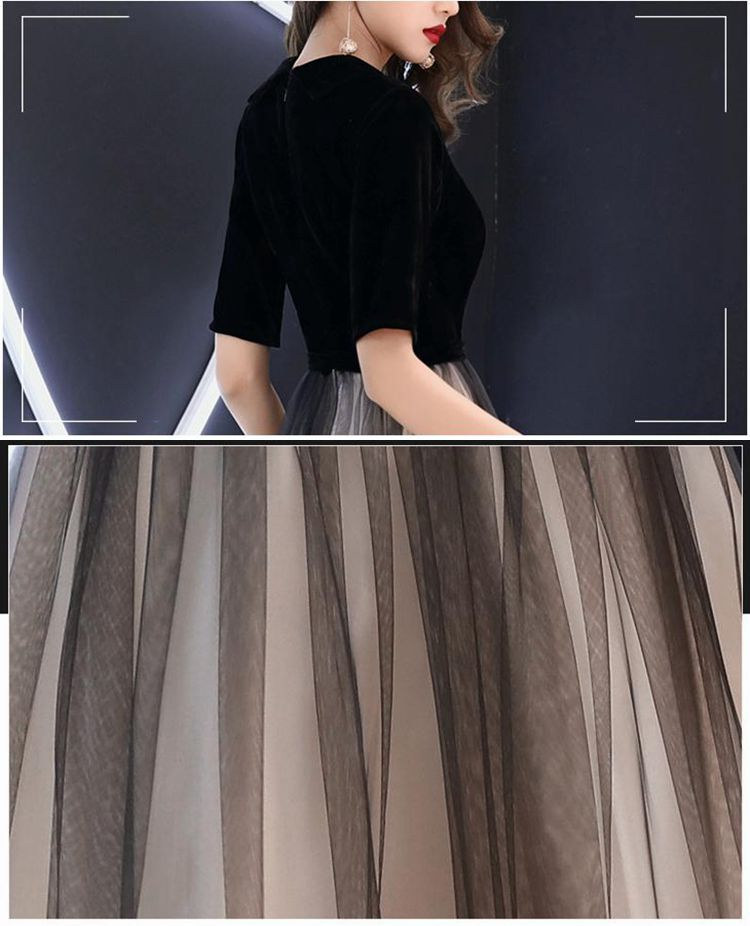 ブラック ワインレッド七分袖Aライン二