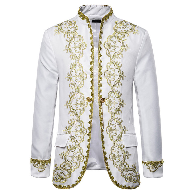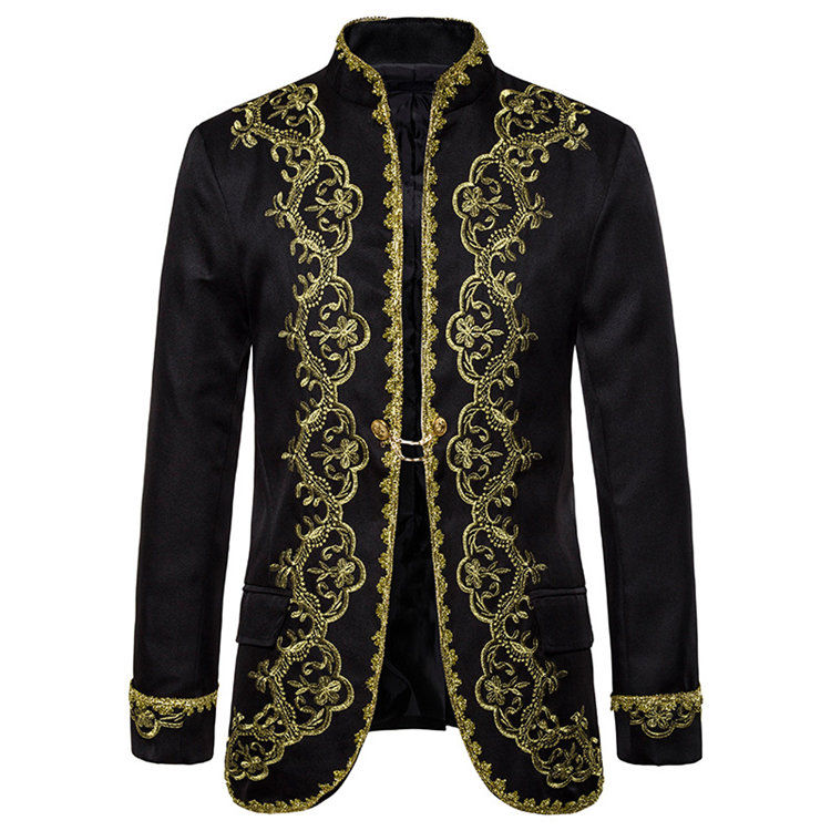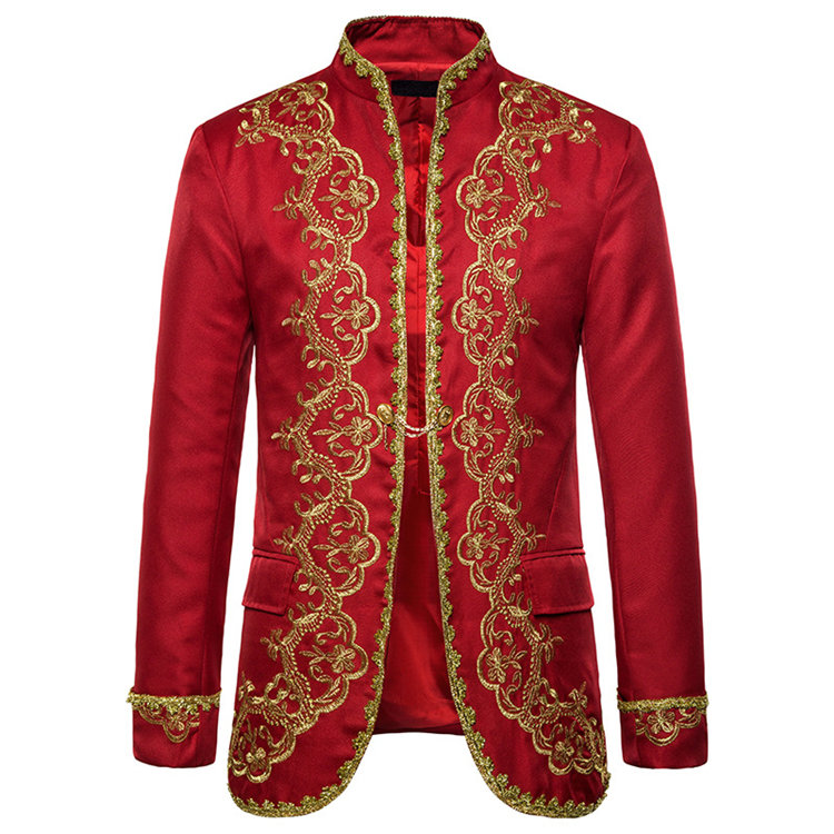 ブラック レッド ホワイト刺繍プリントメンズスーツジャケットタキシードメンズ タキシード演出服 華麗な王族服 王子様 ヨーロッパ風 復古風 コスプレ衣装宮廷服貴族服コスチューム舞台撮影司会 アウターメ