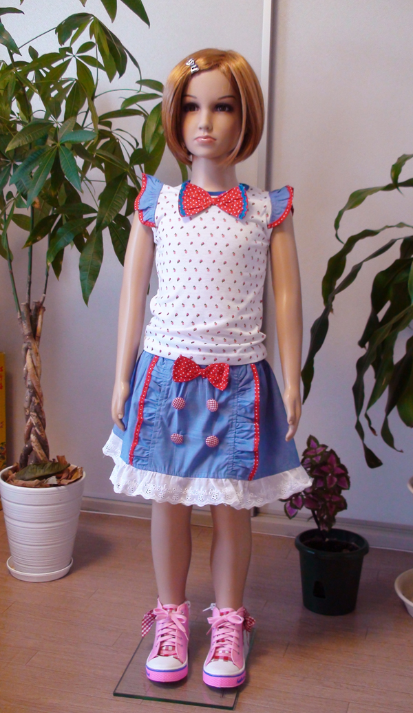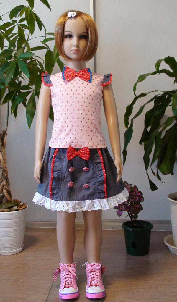 ドット柄リボン&フリル付きイチゴ柄伸縮