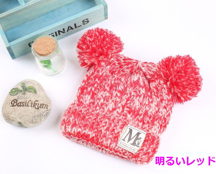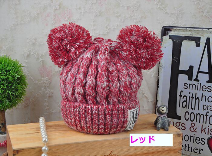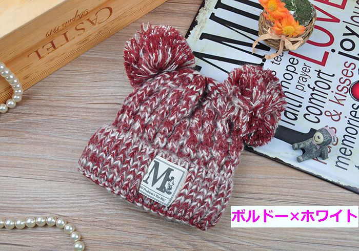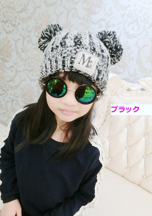 子供 ニット帽 ボンボン2つのシルエッ