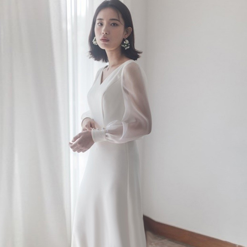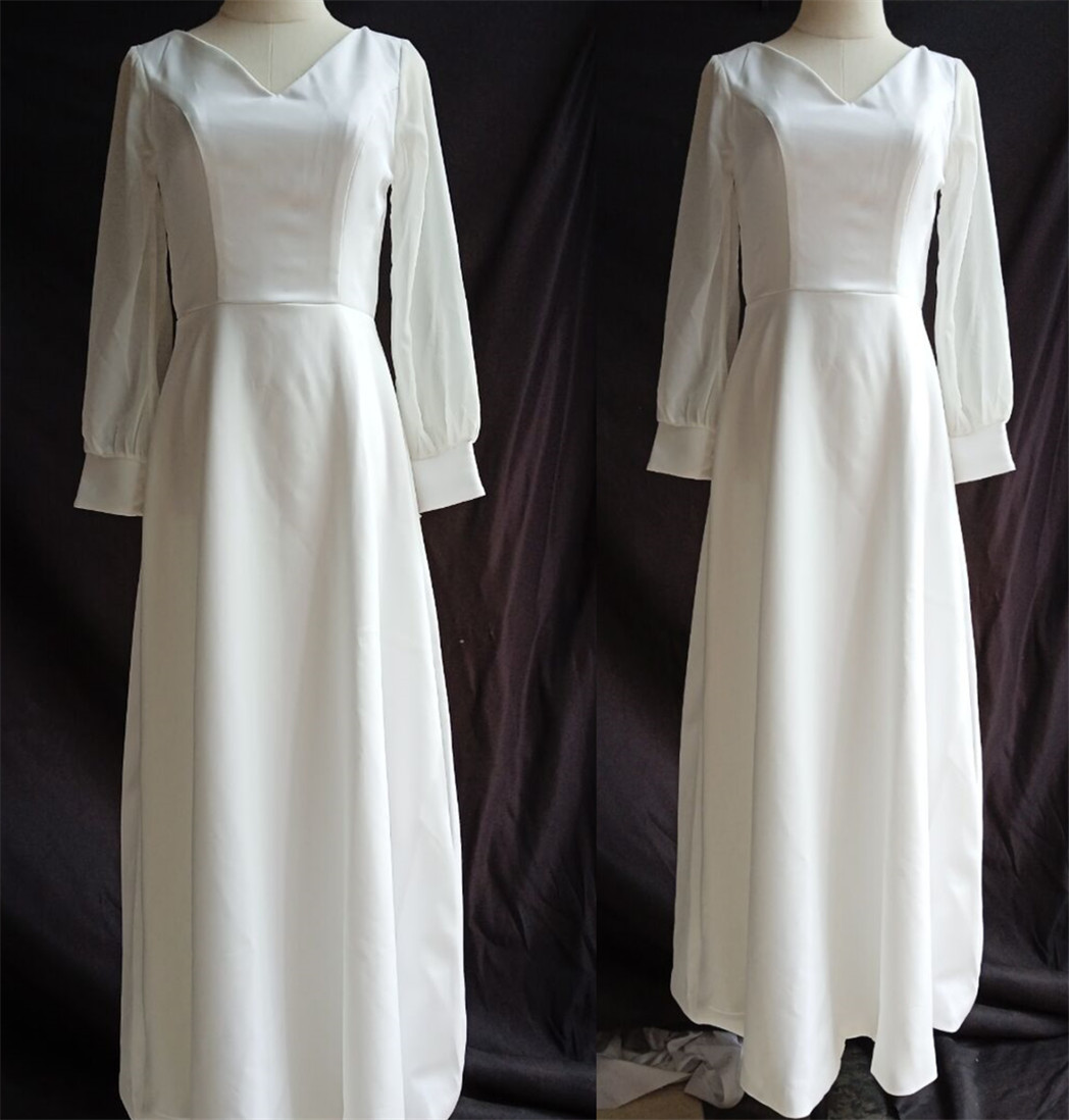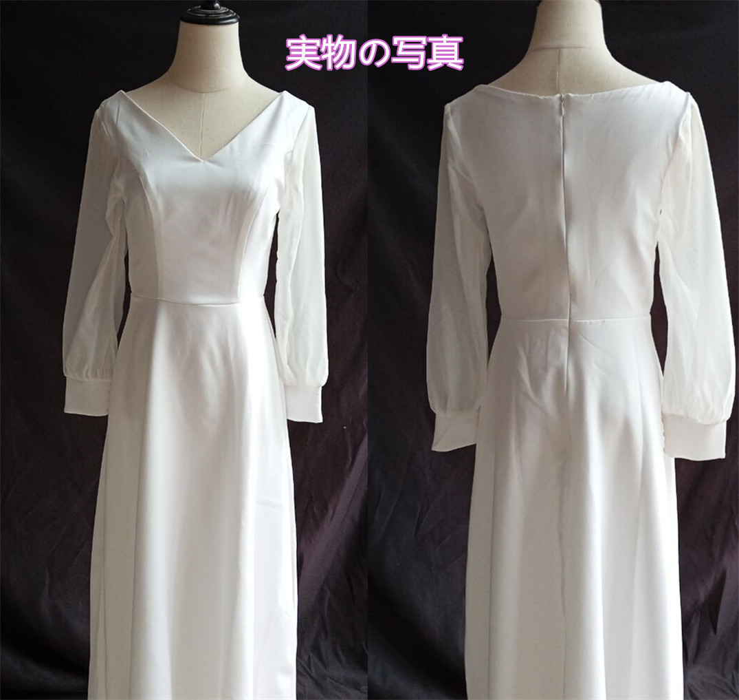ホワイト ウェディングドレスAライン長袖 ロングドレス ウェディングドレス レース 素地 ファスナータイプxs~xxlWedding Dressお花嫁結婚式旅行撮影演出レディースウェディングドレス 透