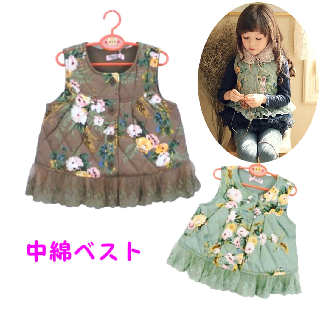 子供服 中綿ベスト 子供 冬物 花柄
