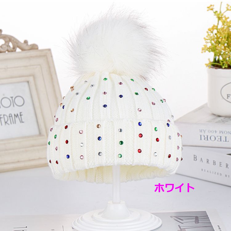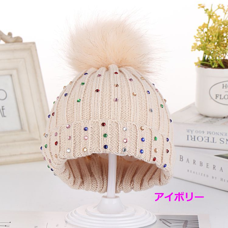 子供 ニット帽 ボンボンシルエットがと
