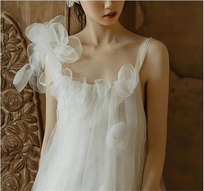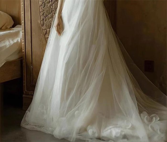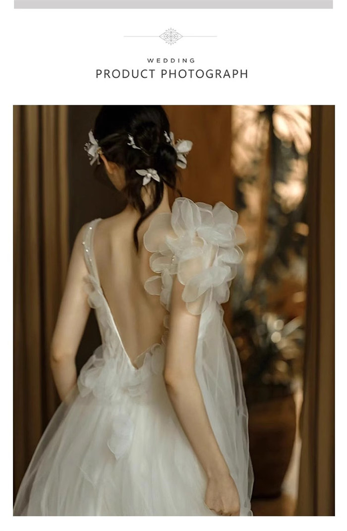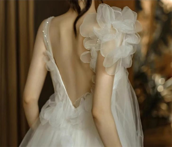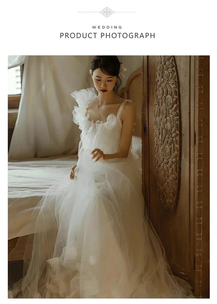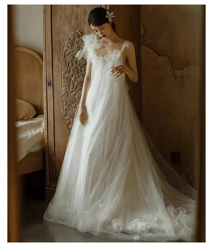 ホワイトロング ウェディングドレス 肩