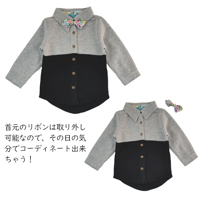 シアースリーブ ドッキングシャツ ボウタイシャツブラウス