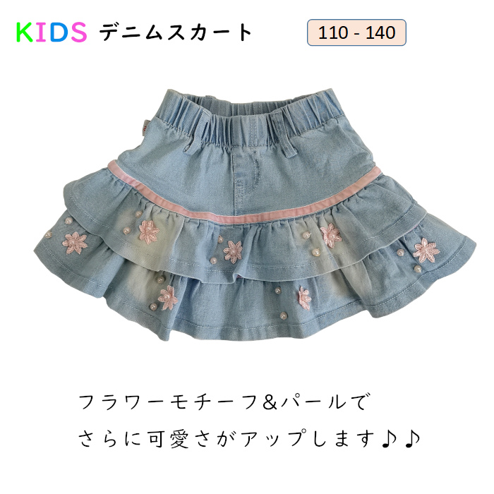 定番のデニムスカート 可愛いフラワー付