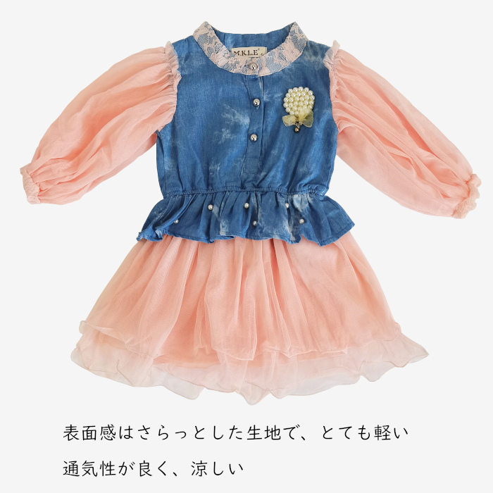リボン付きふんわりスカートのワンピース