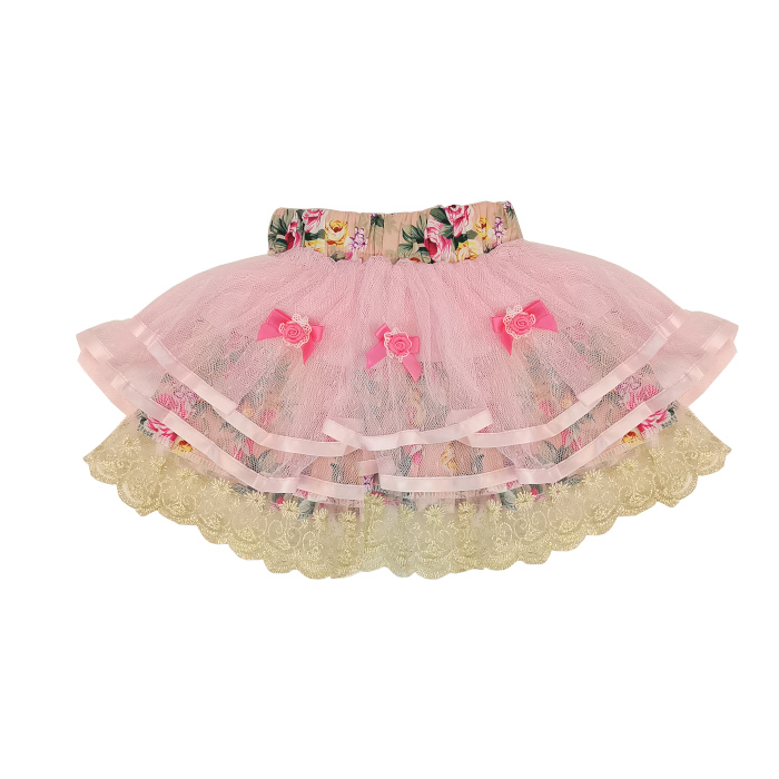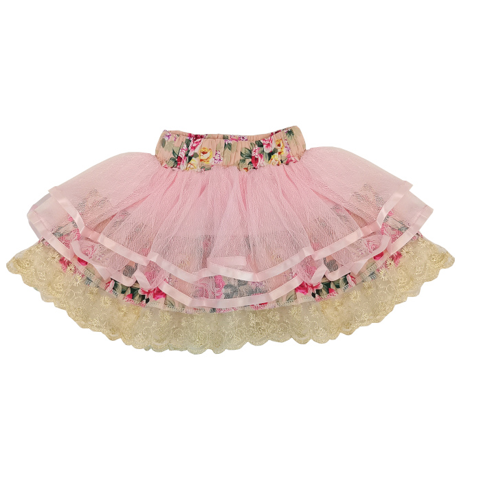 花柄スカートに2段シフォンフリルのチュ