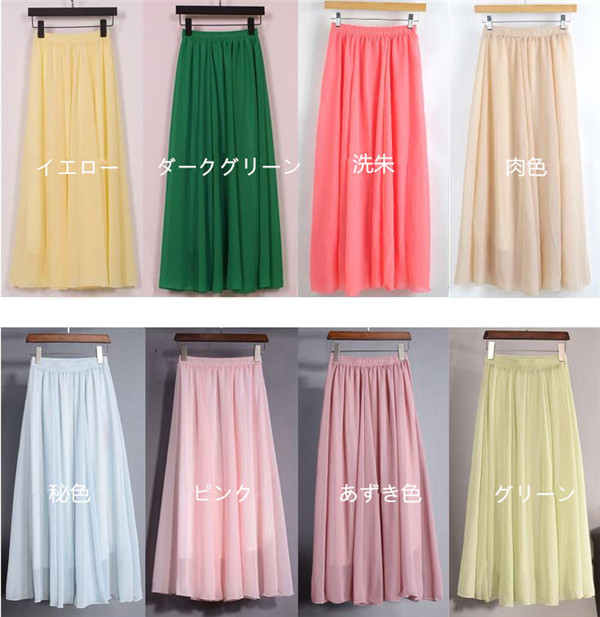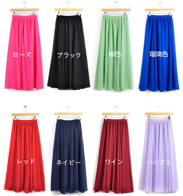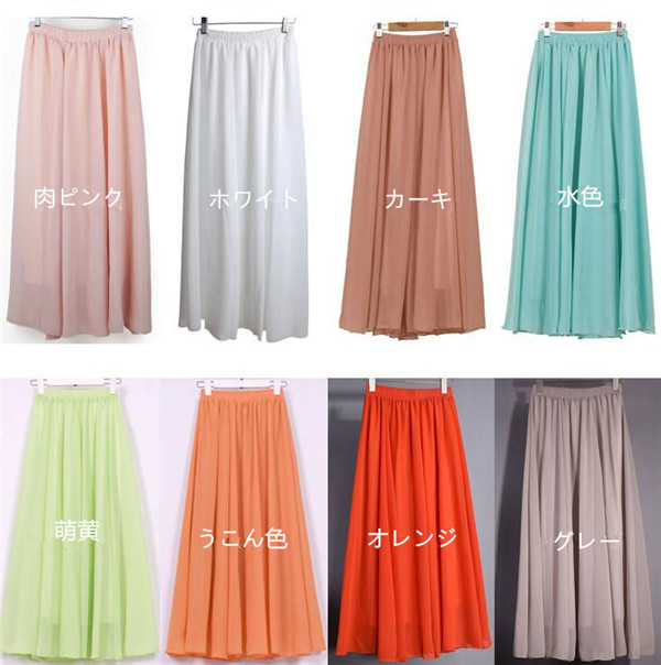 24色入荷マキシスカートロングスカート ロング丈 チュールスカート着痩せ感UPウエストゴムボヘミアン春夏新作無地