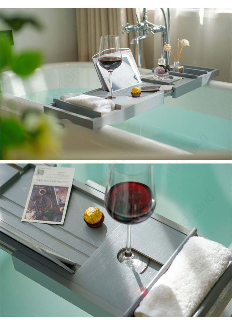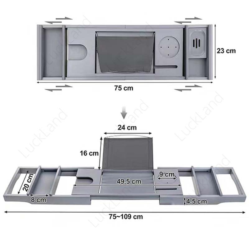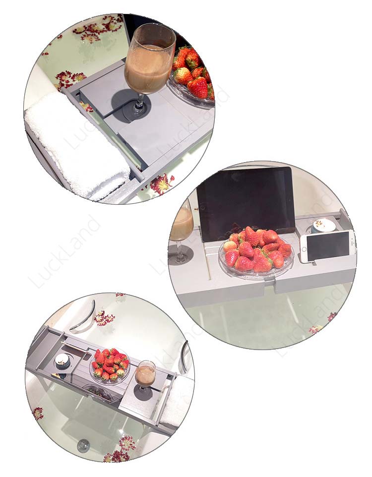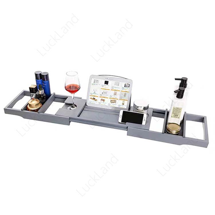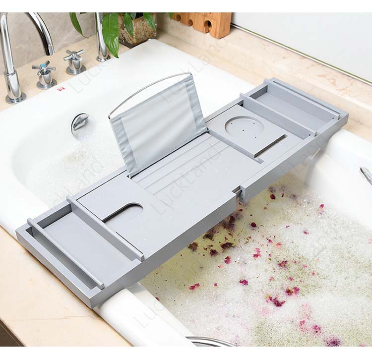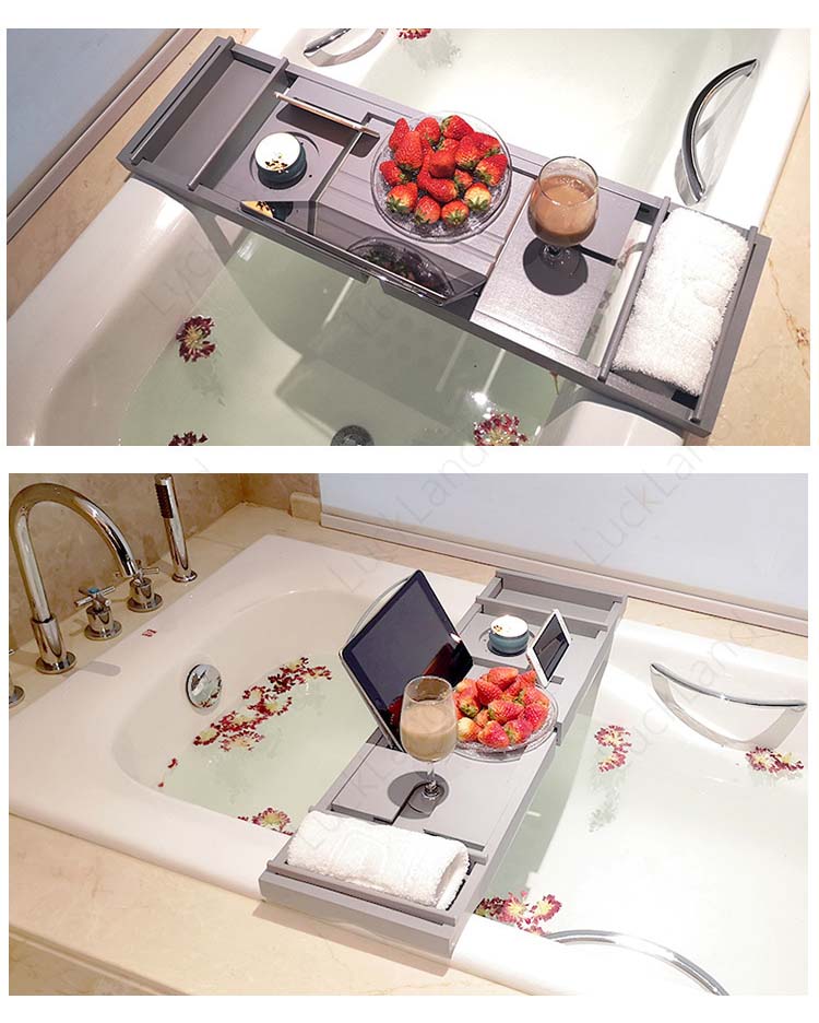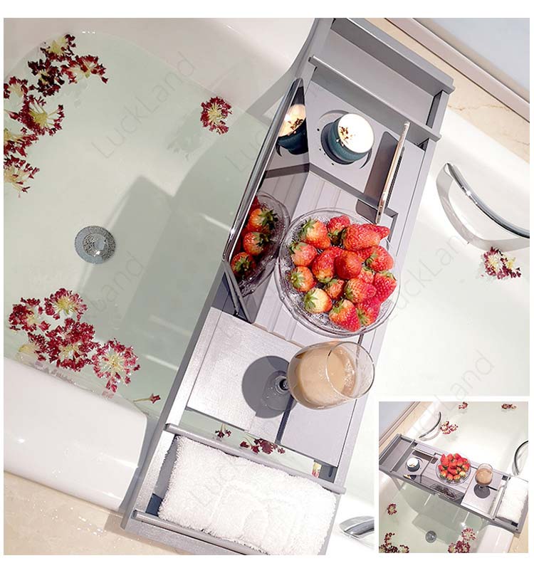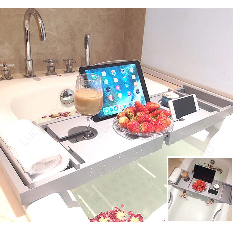 バスタブトレー グレー 竹製 お風呂 テーブル 多機能 バスタブ ラック 伸縮式バスタブトレー 収納 読書 置き台 化粧水 置き台 スマホ ワイン 半身浴 浴槽