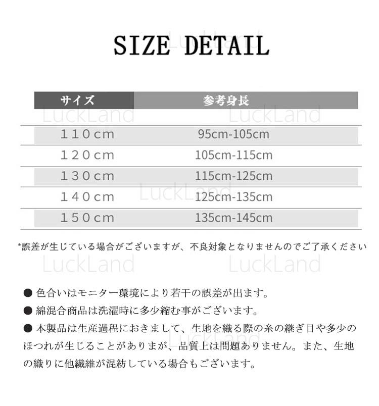 サイズ: 110(推薦身長100) 120(推薦身長110) 130(推薦身長120) 140(推薦身長130) 150(推薦身長140)