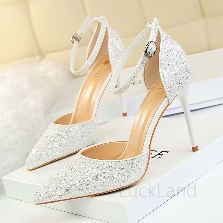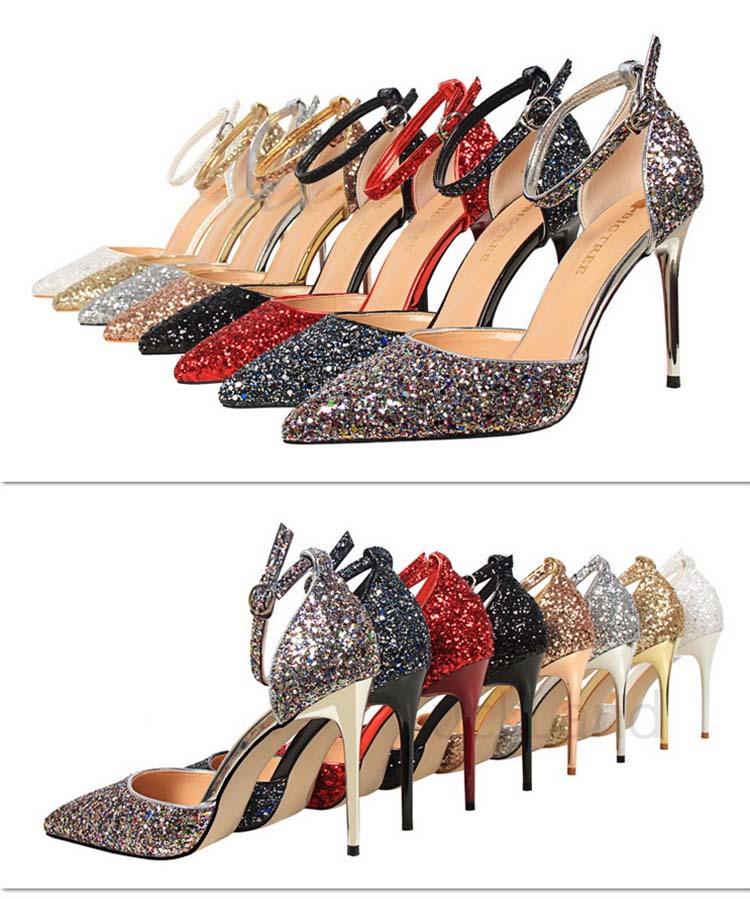 ハイヒール パンプス ストラップ 大きいサイズ ヨロッパ風 スパンコールシューズ サンダル レディース つっかけ デザイン感 クラブ 着痩せ 脚細見え 美脚 セクシー 普段着