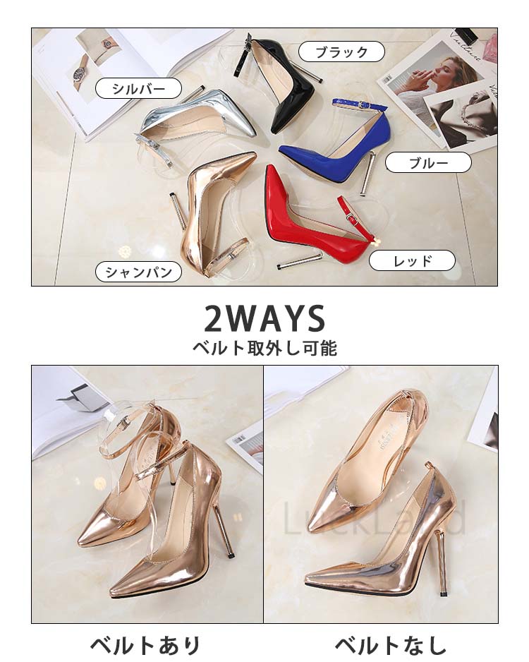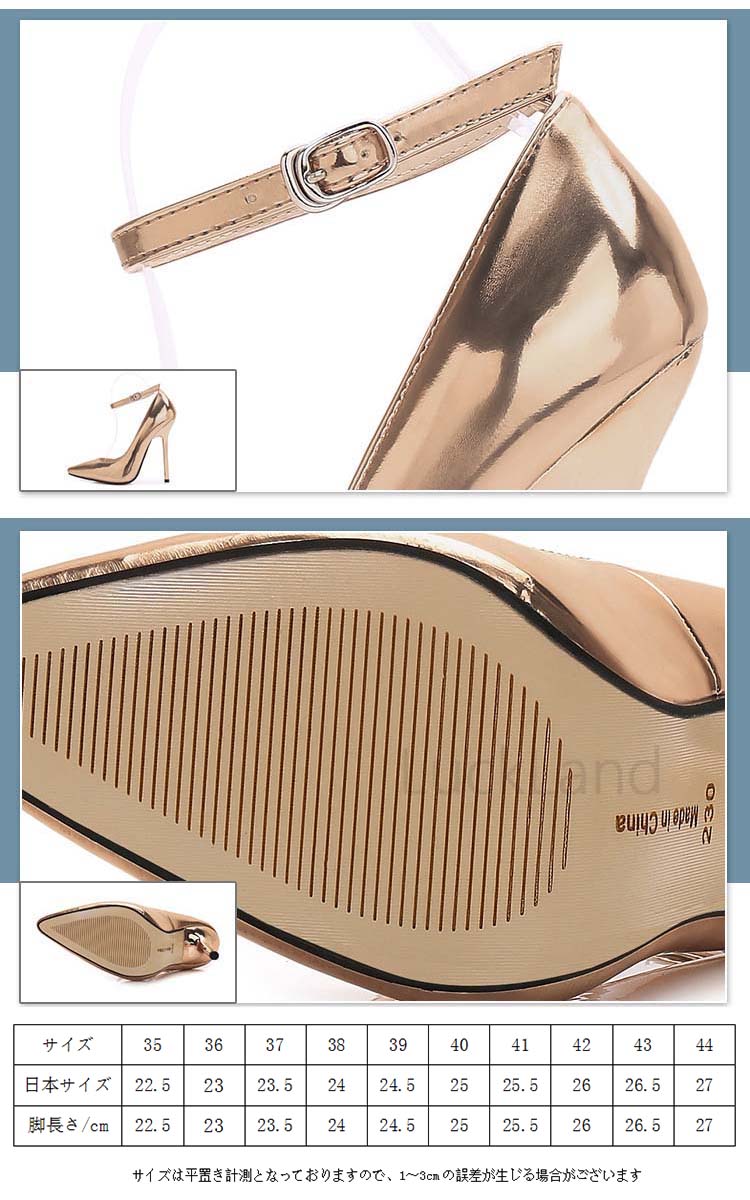 フォーマルシューズ ハイヒール パンプス ストラップ 大きいサイズ 黒 カジュアル 無地 ピカピカ ポインテッドトゥ サンダル レディース つっかけ ヒール 5color 司会 舞台