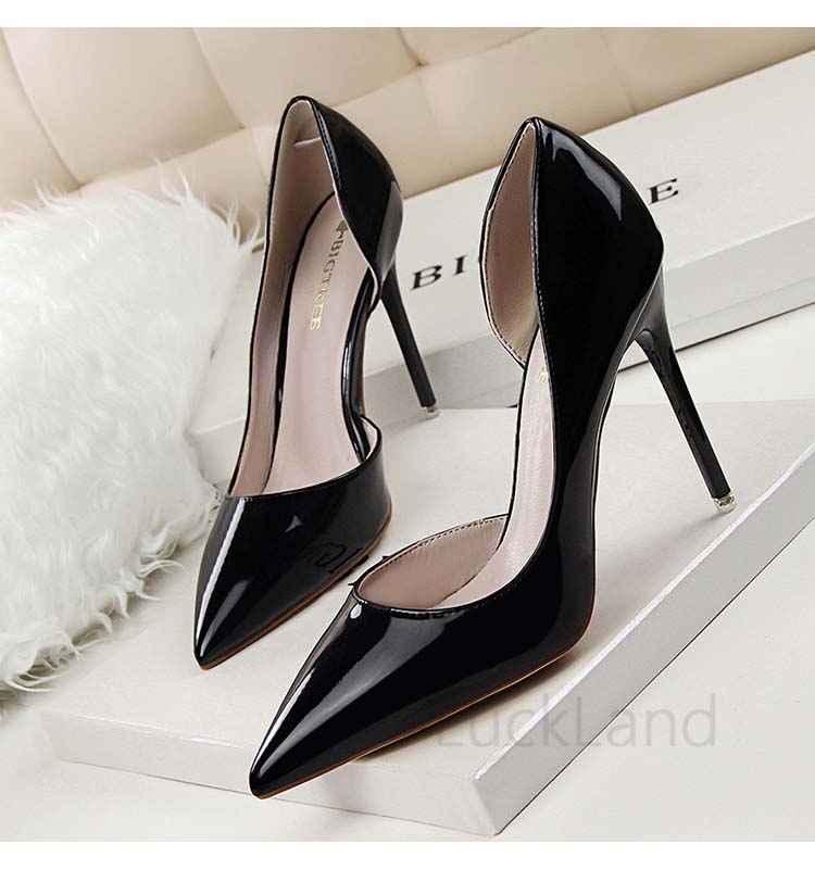ハイヒール レディース 無地 シンプル パンプス 大きいサイズ 黒 サンダル エナメルシューズ つっかけ ポインテッドトゥ 韓国風 着痩せ 脚細見え 美脚 12color ヒール
