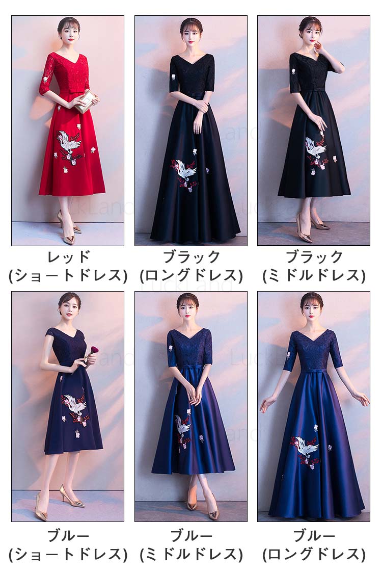 カラー: レッド(ショートドレス) レッド(ロングドレス) レッド(ミドルドレス) ブルー(ショートドレス) ブルー(ミドルドレス) ブルー(ロングドレス)