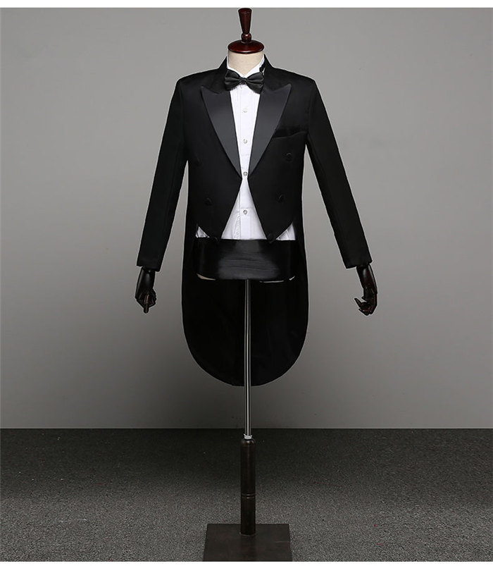 女性 男性メンズフォーマルスーツ 燕尾服結婚式 パーティ 司会スーツ ズボン 蝶タイ カマーベルト シャツの5点セットお呼ばれ披露宴二次会